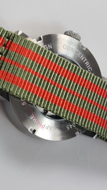 Swiss Design, Case 41 x 8 mm, Stainless Steel, Sapphire Crystal, MIYOTA Automatic Movt., Waterresistant 5 ATM, Color Nylon Band 20mm, plus Extra Band, CONCENTRIC Gift Box, Manual, CCC Small Catalogue .. Price CHF 320 – Get yours as long it’s here!